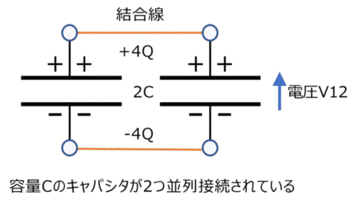 V12: 並列接続されたキャパシタに電荷4Qが蓄えられているときの発生電圧