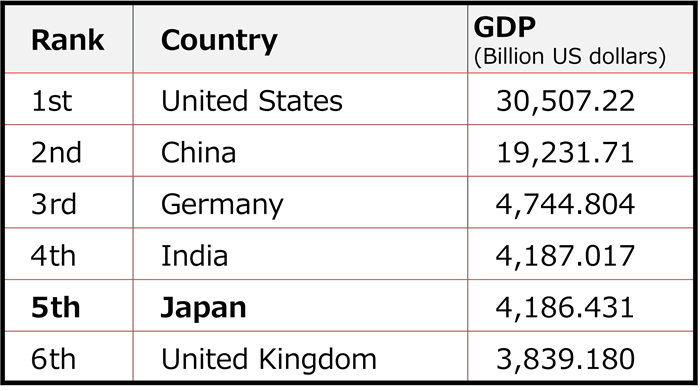 As a result of prolonged stagnation, Japan has been overtaken by China, Germany, and India, and is barely maintaining fifth place. Before long, it is likely to be surpassed by the United Kingdom as well, falling to sixth place.